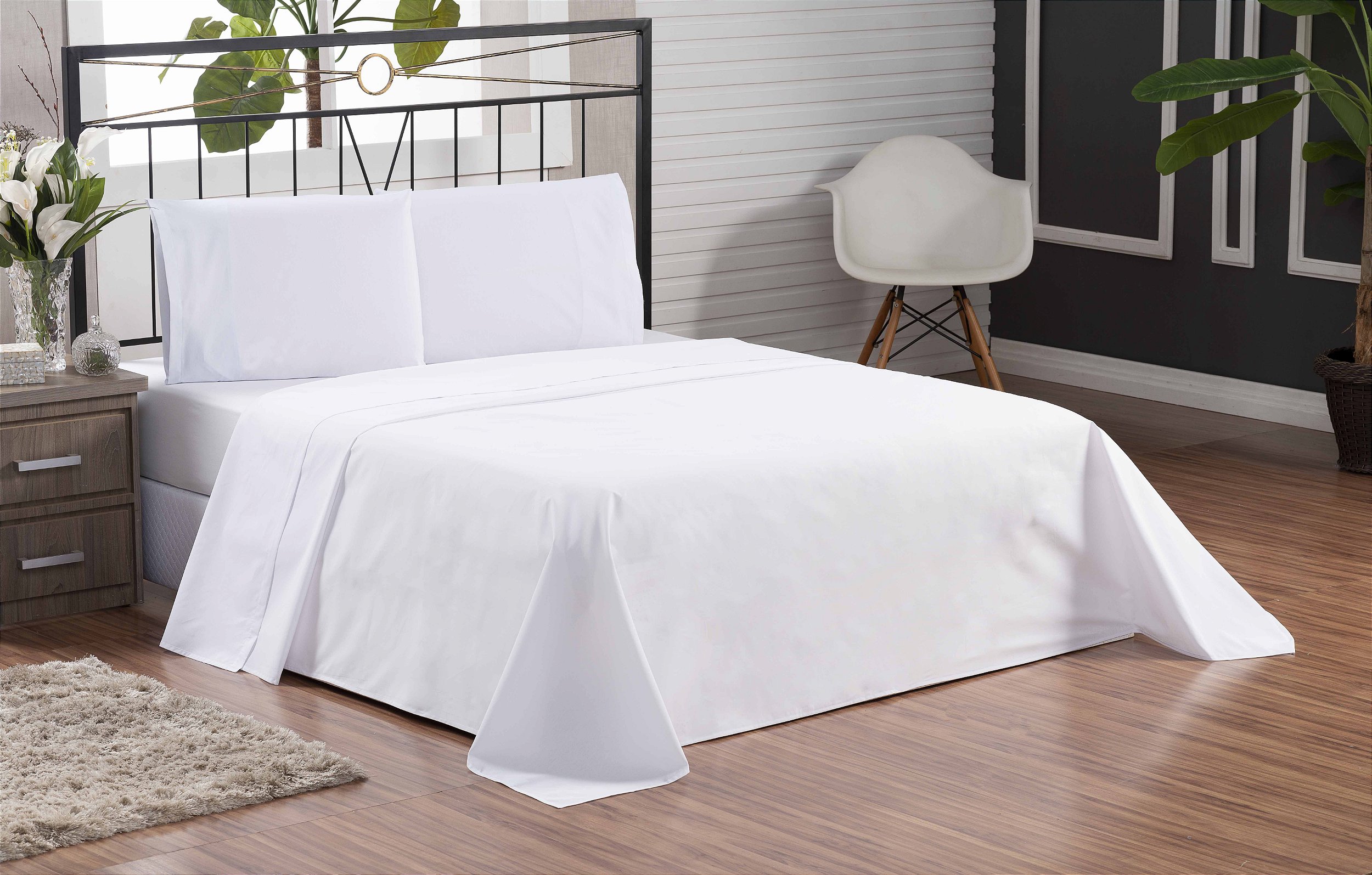 Contém: 1 Lençol com elástico + 1 Lençol sem elástico + Fronha